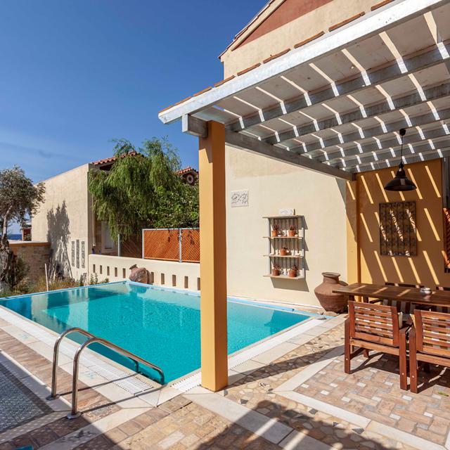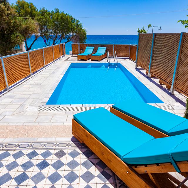 Kymothoe Villas bestaat uit tien stijlvolle villa’s, allemaal voorzien van een privézwembad en gebouwd in traditionele stijl met een moderne twist. Vanuit elke villa geniet je van een panoramisch uitzicht op de Egeïsche Zee, terwijl een klein paadje je direct naar het rustige strandje brengt. De ligging is perfect: op loopafstand van Balos met zijn sfeervolle tavernes, en op korte rijafstand van het levendige Votsalakia. Een ideale plek voor rustzoekers die willen genieten van comfort, uitzicht en de warme Griekse sfeer.